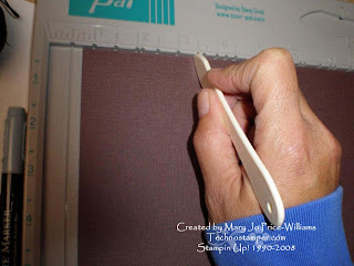 Next you will move the card stock over to the edge and score all four sides at 1/2 inch. This is the measurement with or without the scor-pal.