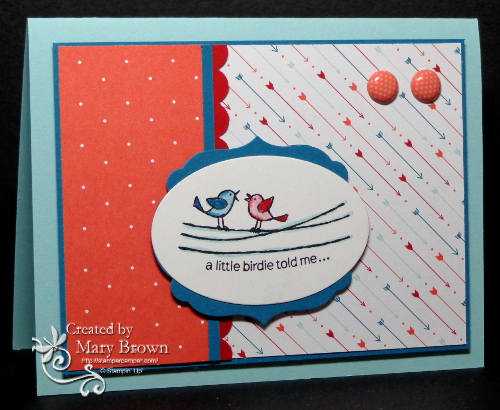 I combined it with the Latenightstamper's challenge this week which is to use a stamp that has a matching punch! And I also used the Dynamic Duos color challenge which is Pumpkin Pie and Bashful Blue.